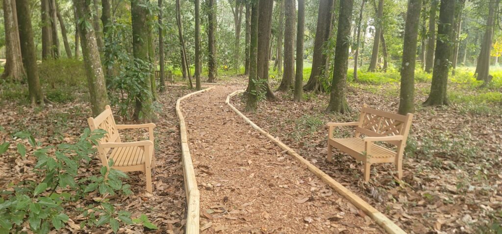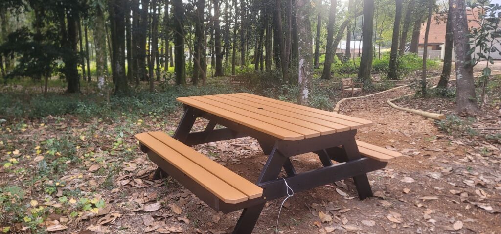 Thanks to $15,o00 grant from Daniel Foundation of Alabama, Grand Bay’s Old Town Park next to Harper Orchards pecan shop and the Grand Bay Library now has benches and a picnic table and the start of walkways though the azalea s,heritage camellias, and the lovely oak trees. Citizens For A Better Grand Bay manages the park and its free to use. Please take your trash. If you want to help us keep the park maintained and help us continue to expand the facilities, please feel free to donate though our PayPal account at citizens36541@gmail.com.